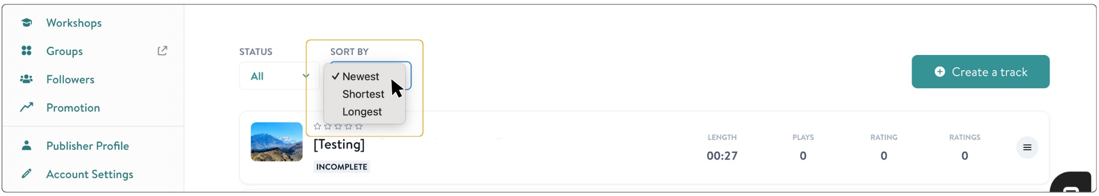 Sort your tracks by newest (most recently uploaded), shortest (fewest minutes), and longest (most minutes). And stay tuned — we have more sorting options coming soon to make it even easier to organize and find your content when managing a large and growing library of meditation and wellness material.