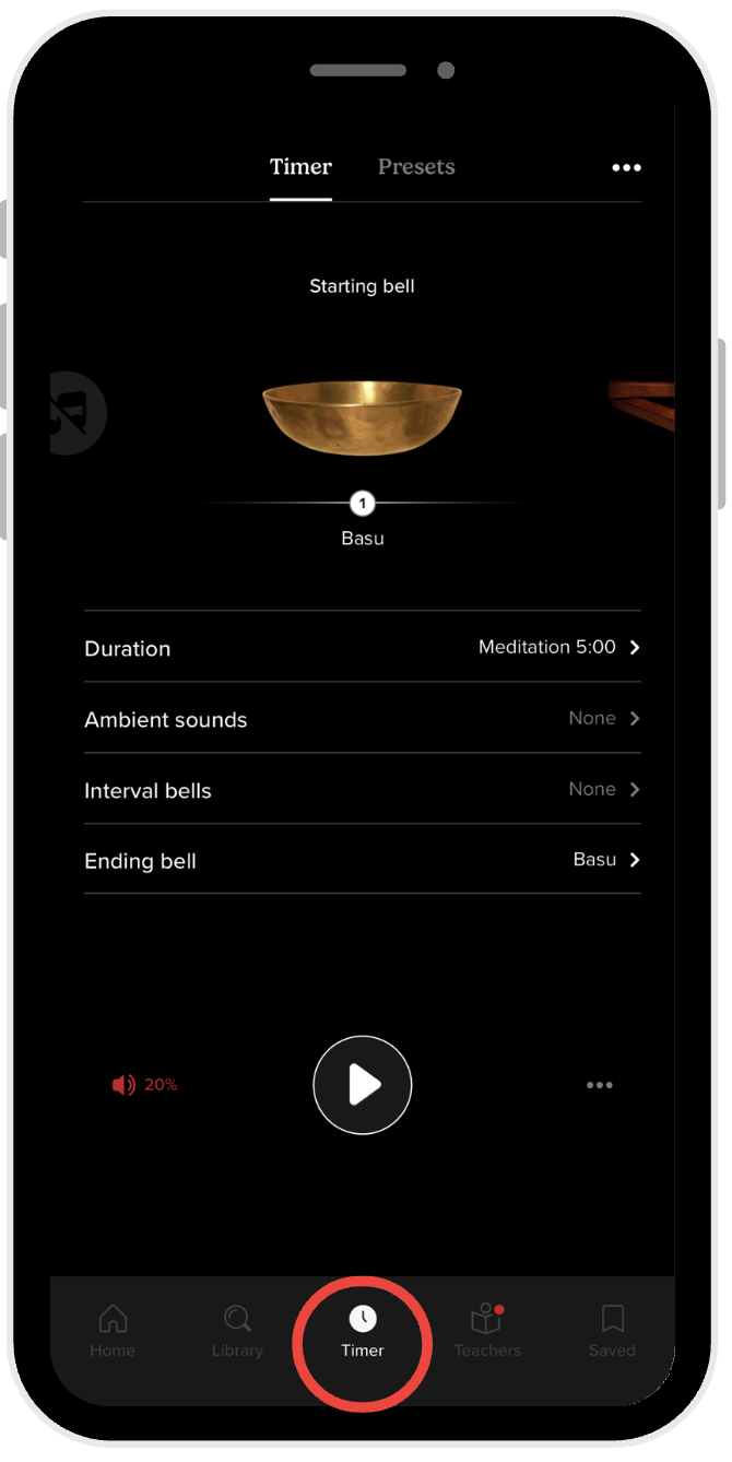You can access the Timer by tapping the Timer icon on the bottom navigation bar, located beside the Library icon.