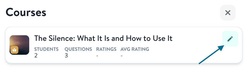 - In the upper right corner of the course details page, click the Pencil icon to enter edit mode.