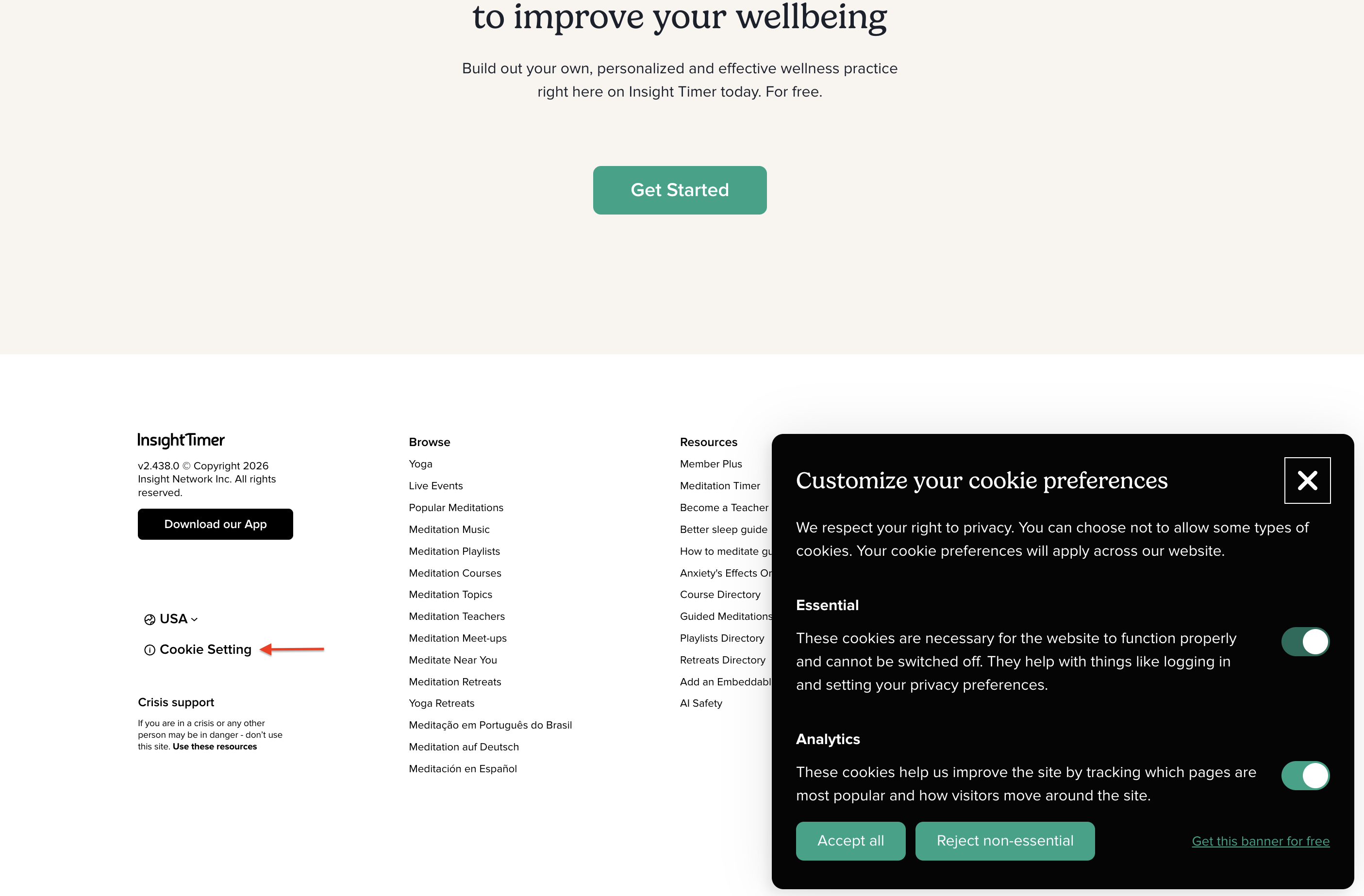 - Click Reject non-essential to opt out.