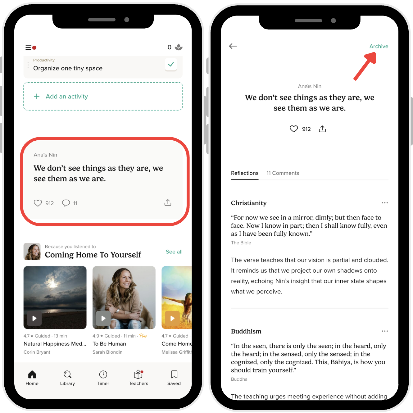 Tap the Daily Quote on the Home screen.