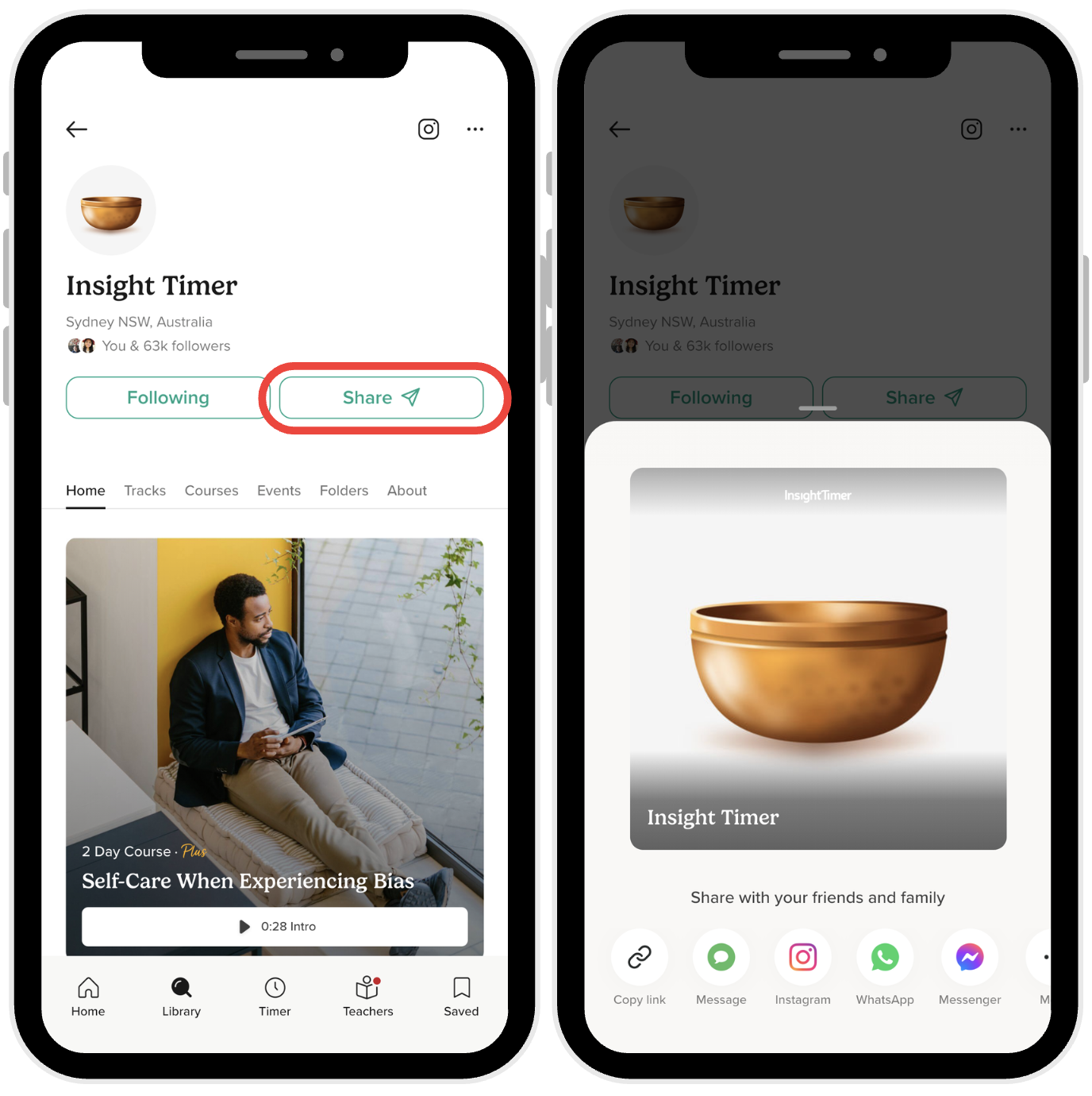 Share from the Insight Timer App