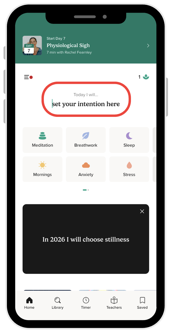 Setting your Daily Intention is quick and easy. You can access it directly from the Home screen, located at the top section above the tile icons.